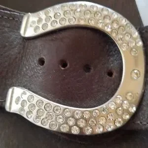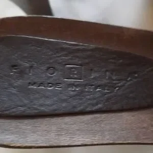 lucky horse shoe leather upper, wooden bottom slides made in italy.
