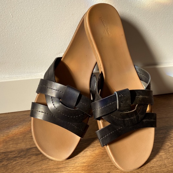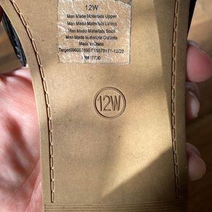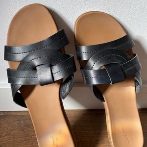 Universal thread black sandals. They say wide, but they definitely are not, in my opinion.