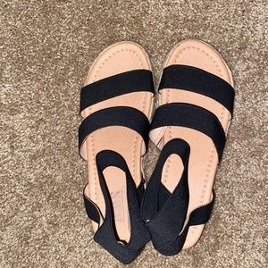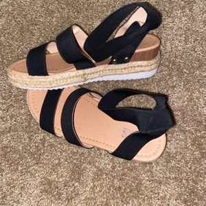 AMS sandals Womens size 10 Black band straps White and straw bottom Great for spring and summer 🌞 Worn once No box