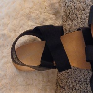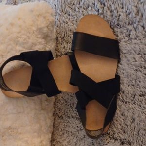 black and beige straps sandals leather very comfortable real leather not fake somebody make me an offer and enjoy