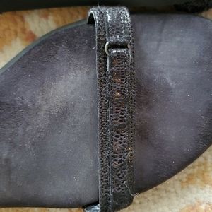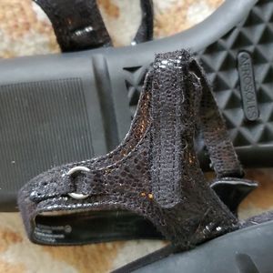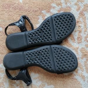 Black sandals with adjustable straps, so comfy, the Aerosole comfort! great shoes. The straps have sort of an alligator-type texture.