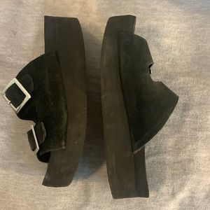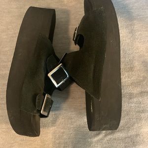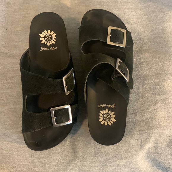 Yellow Box black Birkenstock style Summer sandals. Size 7M slightly worn - overall in good condition.