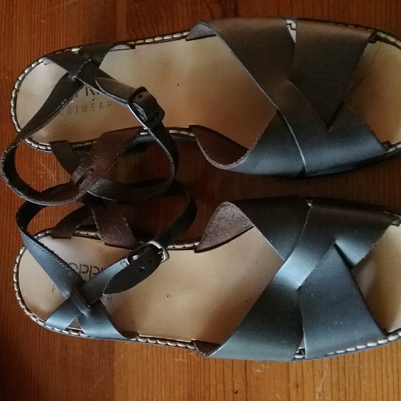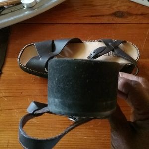 Nice with a boho vibe, sandals in good condition. Chunky low heel. Cute with anything.