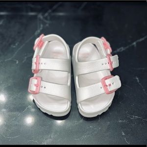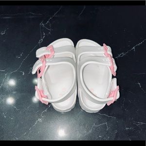 Cute easy white sandals with a hit of pink