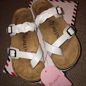 Sandals brand new in box, knock off birkenstocks! Size 9 in women’s. Super cute and has adjustable strap