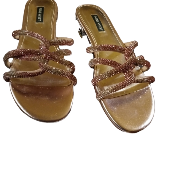Pink, glitter sandals from Nine West. 8M, but run small. Feel more like a 7.