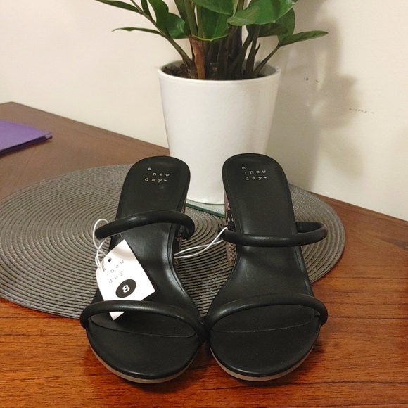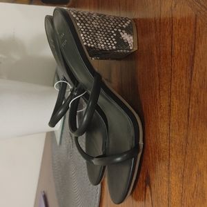 Brand new sandals. Black with snake skin heel. Size 8.