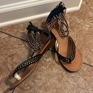 Very beautiful gold & black sandals. Can fit if u have shoe size from 6.5 to 7.5