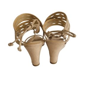 3in heels, tie, beige/cream, open toes
