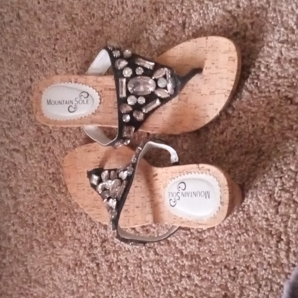 Black wedge slip on with clear jewels worn once