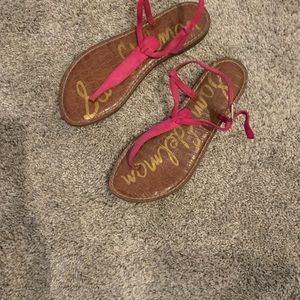 Cute hot pink sandals, straps around the ankles for easy adjustment with a cute heart buckle. Perfect to dress up or keep casual.