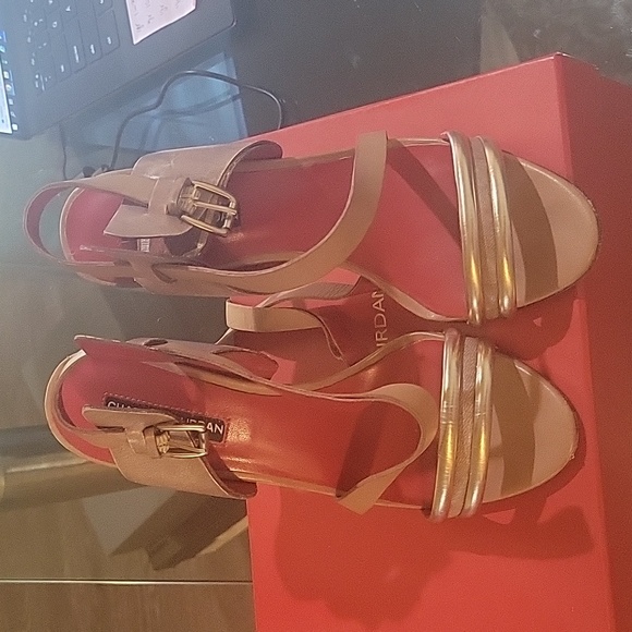 Charles Jourdan sandals in US size 8. preowned. straps a little worn,will need a little glue. overall in good condition. about 4inches.