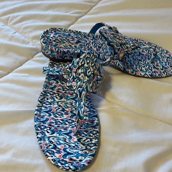 Crown and Ivy sandals. Blue and pink.NWOT. I believe these to be a 9 wide. Loved them when I purchased but they slip off my feet. Only worn in house on carpet.