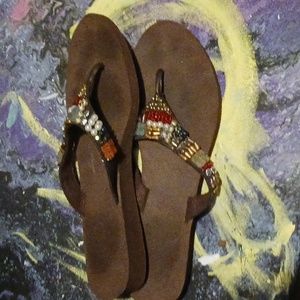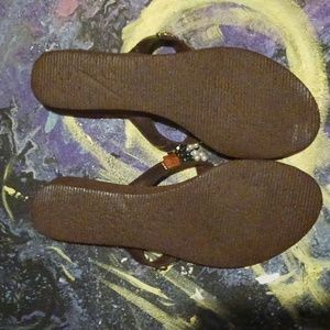 Cute brown flip flops with jewels in good condition. No size, measurements are in pics