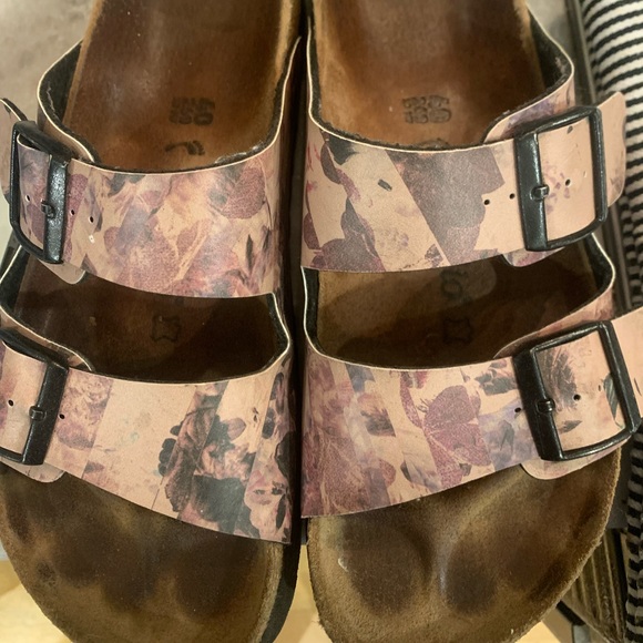 Tan floral sandals by Papillio by Birkenstock