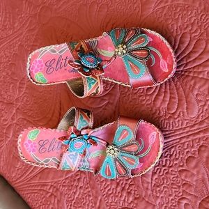 Handmade, beautiful, very detailed, multi-colored comfortable, excellent condition, barely worn perhaps 3 times.