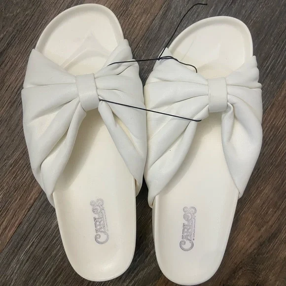 Bow Florita sandals. New! One light smudge noticed and photographed. Leather-like material.