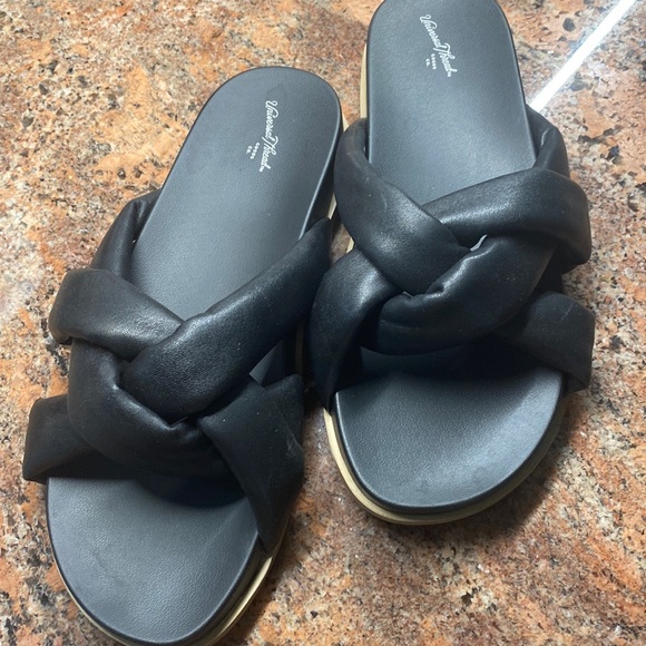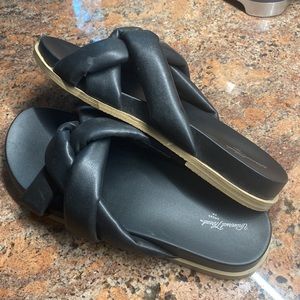 Black women’s slide, slightly puffed, intertwined straps on top. Like new