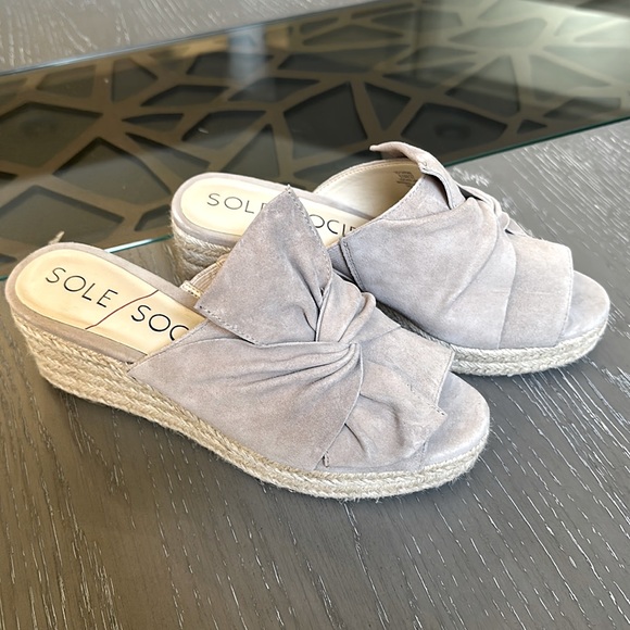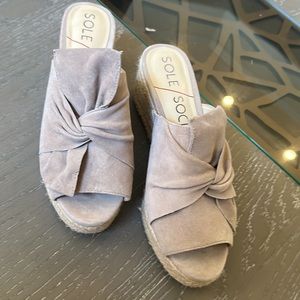 These Beige faux suede sandals, with 3” heels are practically brand new. I only wore them twice.