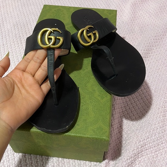 Women’s leather Gucci sandals worn four times. So much life left. Very minor visibility of wear. Photo reference how they look on