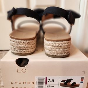 Lauren Conrad open toes sandals; black; size 7.5; memory foam; worn twice. In excellent condition.