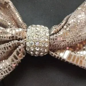 Yellow Box Used sandals. Size 10 in good condition. The bottom is black. The bows are rose gold. Clear crystals in center of bows
