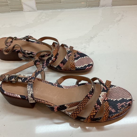 Multi snake leather low heel sandal, never worn