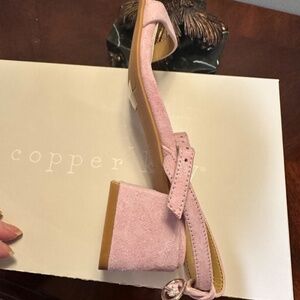 NEW! Size 5 pink suede sandals. Heel is under 2”. Very comfortable. I am a true 4.5 so they are too large for me. Grab these now for summer!