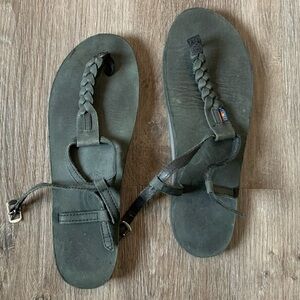 Black Rainbow Sandals. Worn a few times. Probably for around 3 hours total. So the soles are not molded to my feet or heels like rainbows do.
