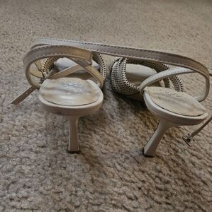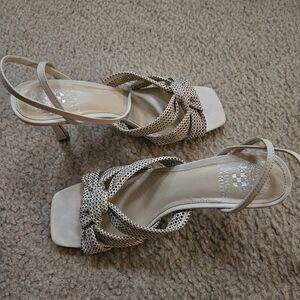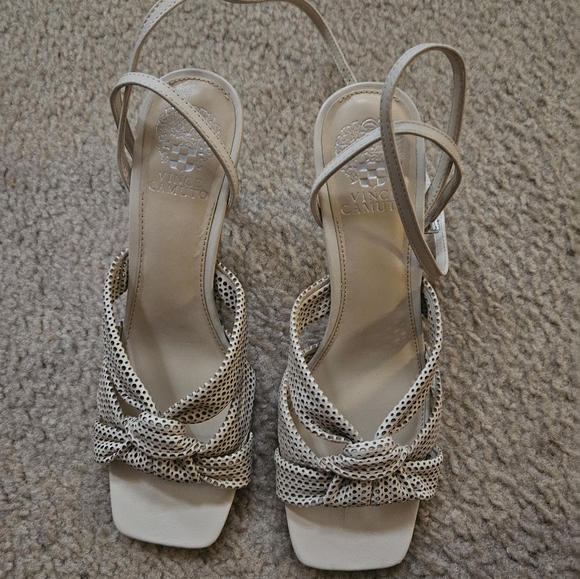 These gently used cream colored Vince Camuto sandals are perfect to wear to dress up or down, evening to daytime brunches.