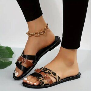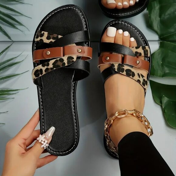 Cute leopard print and black/brown flat sandals