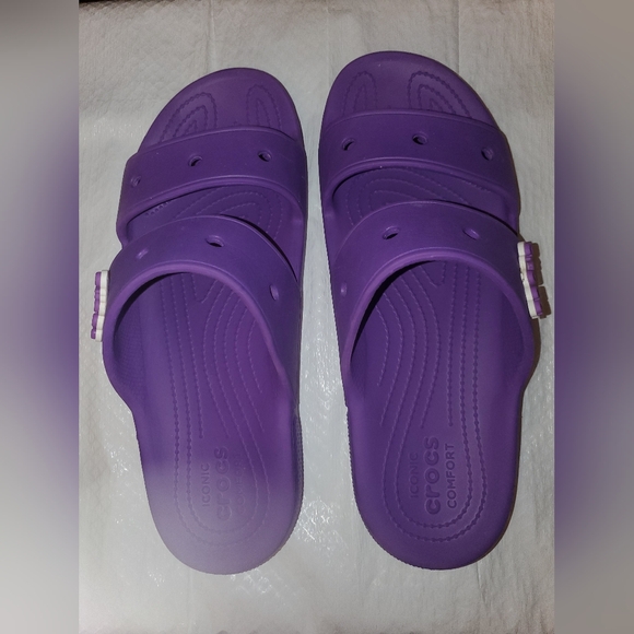 Gently used, purple colored Crocs. 13 Women 11 Men Needs to be cleaned.
