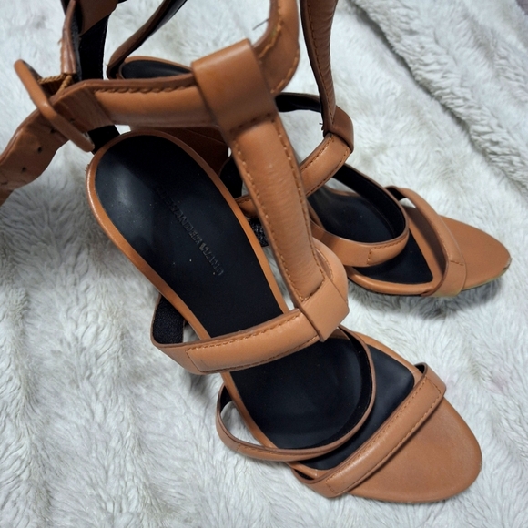 Sandals are in good condition with just a few scuffed areas. Alexander Wang women's block heeled sandals with ankle straps, leather (used)