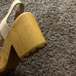 Size 10, dr sholls shoes. Wear and scratching on the heel part, can possibly be painted/fixed sold as is. Great with a longer pair of jeans possibly! :) very comfortable