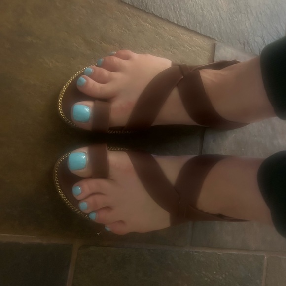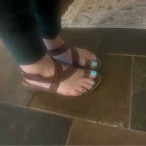 These sandals have only been worn inside the house. They are in excellent condition and super comfy.
