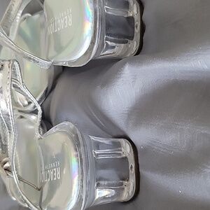 reaction by Kenneth Cole silver dress sandal. they have a small clear heel and great silver sparkle. EUC with lots of life left