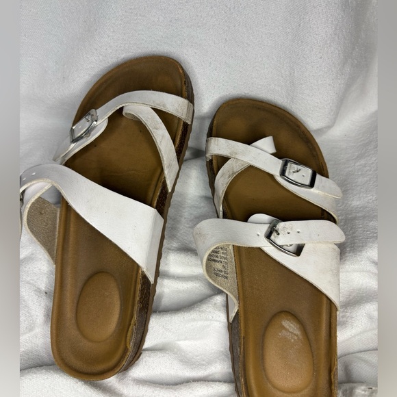 Tan and white used sandals size 2 1/2