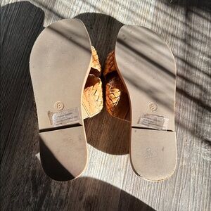 Size 8, like new universal thread sandals. They have been worn a couple times, but there are no foot imprints :)