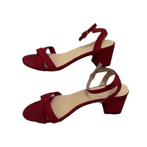 Sandals Block Heels Women’s Criss Cross Red Ankle Strap Buckle Closure Size 9.5