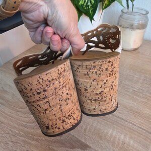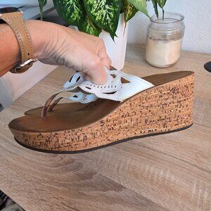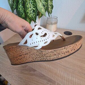 White leather uppers with a 3" cork heel