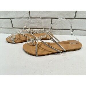 Sandals Womens 8.5/43 Rhinestone Casual Slip On Thong Flip Flops Flats White
