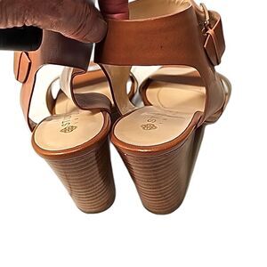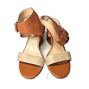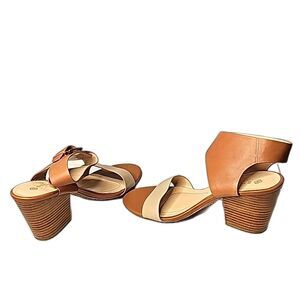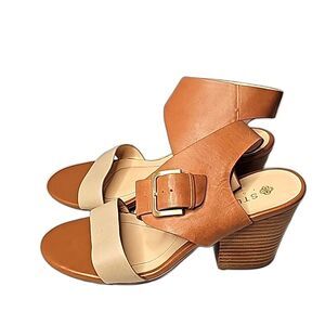Sandals by Studio Isola Chunky Strap Leather Beige Tan Size 10, heel 3.75", in good condition.