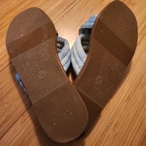 Cute, sky blue sandals with cloth uppers. Fun & easy summer shoes!