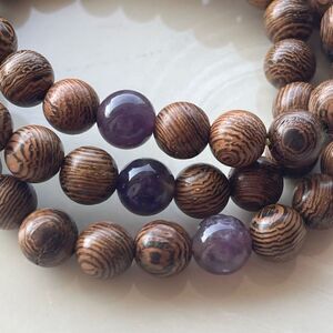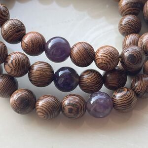 Sandalwood amethyst beaded bracelet ONE NEW stretch reiki meditation yoga