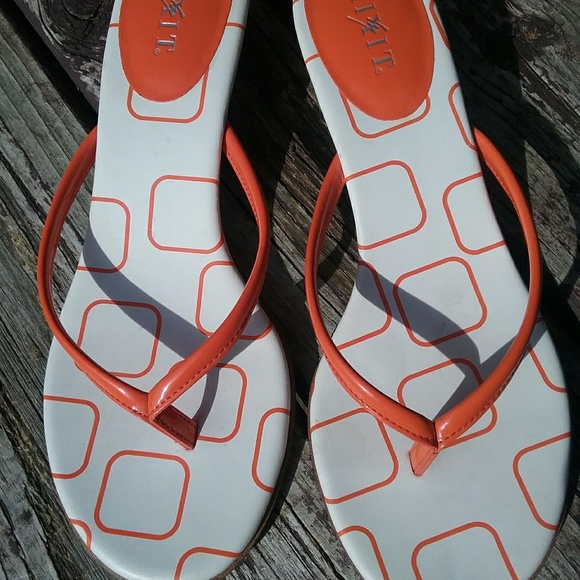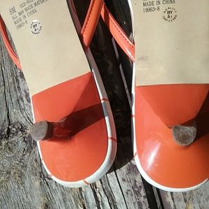 Small heel, orange and white slip ons
