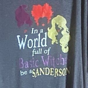 Pattern: Graphic Print - Sanderson Sisters silhouettes, Quote: “In a world full of basic witches be a Sanderson”