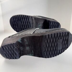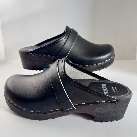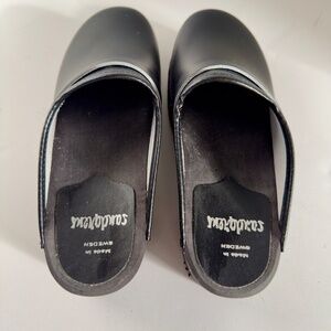 Sandgrens Black Leather Wood Clogs New in Box Tokyo Style