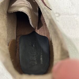 Color: Sand leather upper and brown wood sole.