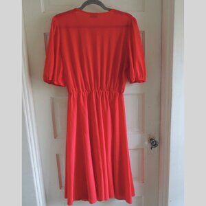 Sandi Dee Vintage 70s Red & White Puff Sleeve Pleat Top Dress 14 L/XL