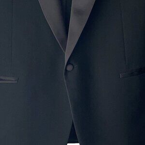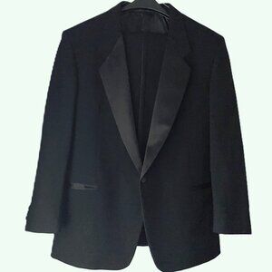 Sandini “Viceroy” Black Tuxedo Satin Notch Lapel Jacket R46 Pants R41, 100% Wool